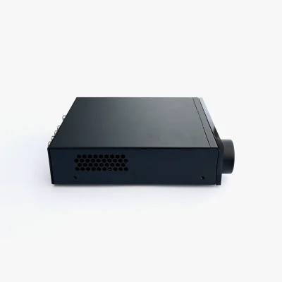 - OLED front panel display, rotary encoder and remote control.